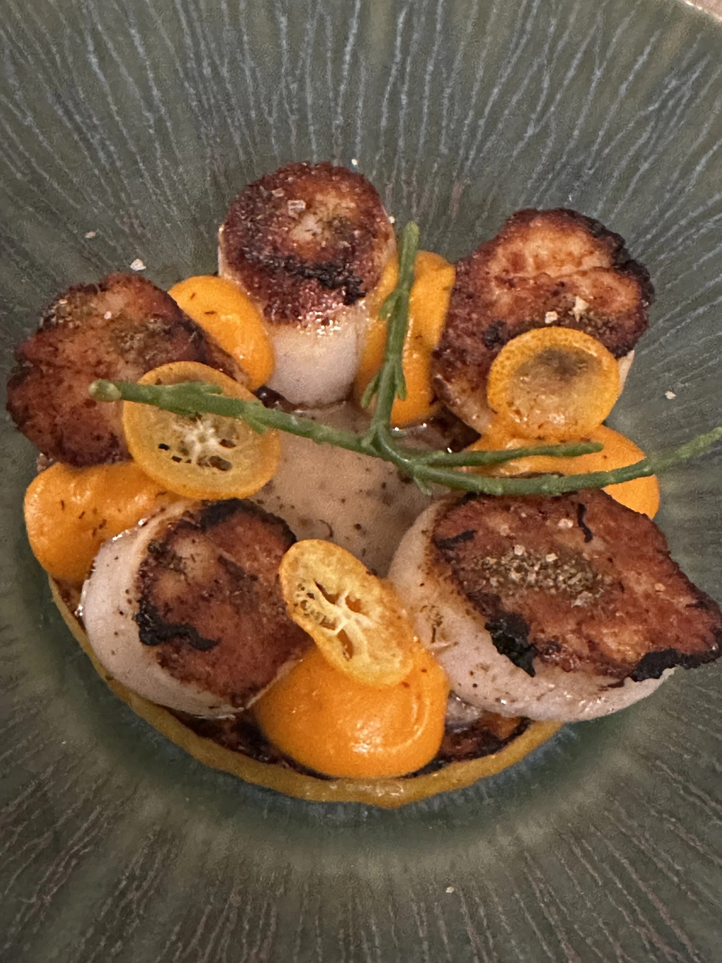 Aurélien Martin n’est pas un chef comme les autres, le terme d’Alchimiste lui conviendrait mieux. Son menu gastronomique en 5 ou 7 services, vous transporte dans un voyage extraordinaire. De sa découverte du monde et des cultures, différentes de la notre, il use sans jamais en abuser, de petites touches qui transcendent les beaux produits du marché. C’est cette capacité à deviner les plus belles associations, souvent osées, qui rend chaque bouchée une explosion pour les sens. Mais le maître mot reste le respect des cuissons et des saveurs originelles. On aurait envie d’y retourner chaque jour pour découvrir ce que ce magicien a inventé comme nouvelle recette, en effet ce menu surprise change chaque jour, au gré de ses découvertes. Les assiettes sont joliment décorées et la cuisine envoie, à votre rythme mais sans attente inutile chaque étape, une vraie prouesse. Aidée par sa compagne Marie, toute de gentillesse et de charme, le service est agréable et son équipe suit ce mouvement perpétuel sans à coups. Nous étions en terrasse, tellement agréable en ce dernier soir du mois d’août, mais que ce soit la jolie salle claire ou la mezzanine, il règne toujours ce sentiment de confort et de détente. La carte des vins évolue doucement mais surement avec quelques incursions raisonnées en “nature”. Toujours dans le top 5 de nos préférences, c’est une expérience incroyable qui vous attend et de surcroit à des tarifs qui sont loins d’être (g)astronomiques. Pensez à réserver car les places sont chères.